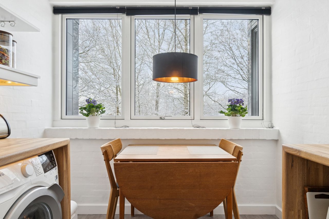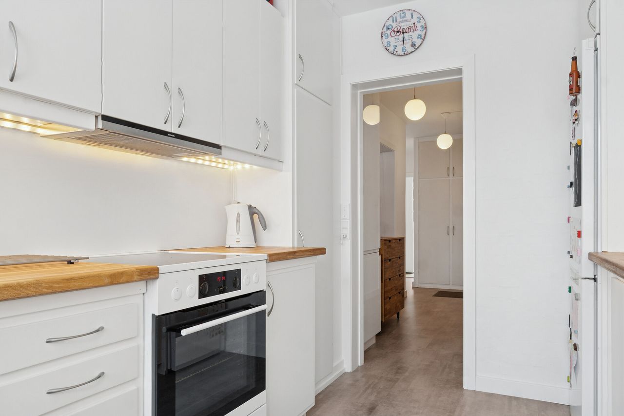Køkkenet fremstår moderne og funktionelt med pæne, tidløse materialer og god arbejdsplads. Lejlighedens to værelser giver fleksible indretningsmuligheder og er i dag indrettet som soveværelse og gæsteværelse, men kan let tilpasses børneværelse, hjemmekontor eller hobbyrum efter behov. I både stuen og værelserne mødes du af klassiske plankegulve og lyse vægge, som tilfører boligen varme, karakter og et tidløst udtryk.