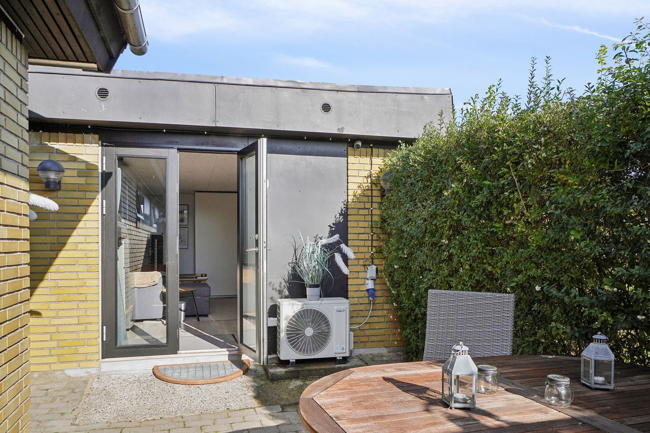 I træder ind i en lys entré med god opbevaringsplads, hvorfra der er adgang til et praktisk gæstetoilet. En fordelingsgang leder jer videre ind i boligens naturlige samlingspunkt – det store køkken-alrum. Her møder I et moderne køkken med køkkenø, der giver både arbejdsplads og mulighed for at samles omkring lektier, hygge eller madlavning. Rummet har plads til både spiseafsnit og sofaarrangement, hvilket skaber en åben og indbydende atmosfære. Fra alrummet er der direkte udgange til flere terrasser hvor eftermiddags- og aftensolen kan nydes, i den lukkede grønne have. Alrummet giver også forbindelse til et praktisk bryggers og et moderne badeværelse med flotte klinker og væghængt toilet. Værelsesafdelingen byder på tre gode børneværelser og et forældresoveværelse, samt gæstetoilet, så her er plads til hele familien.