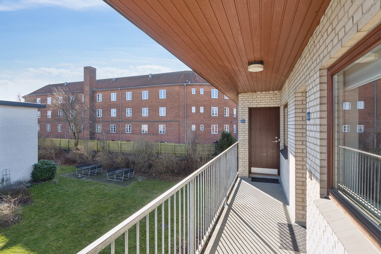 De grønne fællesarealer hører til blandt de mest velholdte i Roskilde med privat have, borde/ bænke og grillmulighed. Endvidere privat parkering med Clever ladebokse.