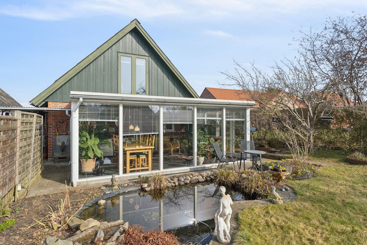 Udendørs får I jeres egen hyggelige have, som vender mod syd, hvor der er god plads til både leg, afslapning og hyggelige stunder på terrassen. Til boligen hører desuden egen parkeringsplads, et praktisk skur, samt et velisoleret anneks med mange anvendelsesmuligheder – oplagt til hobbyrum, værksted, opbevaring eller et roligt hjemmekontor.